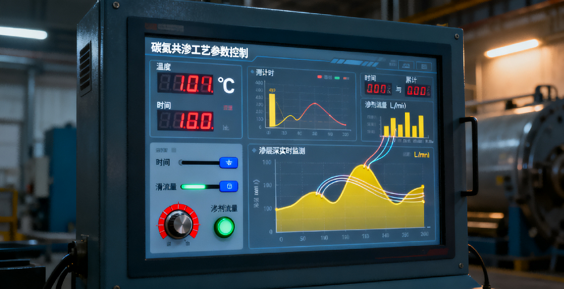 碳氮共滲的滲層深度與保溫時間呈正相關,在滲劑活性充足的前提下,時間不足會導致原子未充分擴散至目標深度。