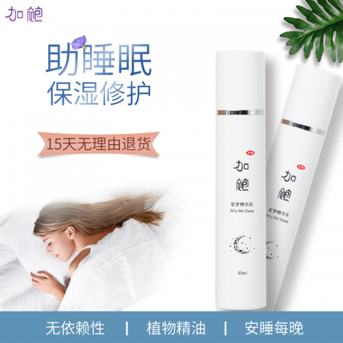 加袍星夢精華乳是一款主打幫助睡眠、保濕修護(hù)功效的精華乳液,添加各種助眠的有效精油成分,通過精油滲透進(jìn)皮膚再進(jìn)入血液,產(chǎn)生助眠鎮(zhèn)定效果,另外,于臉部涂抹的精華乳液,所含精油成分揮發(fā),從鼻腔進(jìn)入刺激大腦前葉分泌出內(nèi)啡肽及腦啡肽兩種荷爾蒙,使用戶的精神狀態(tài)得以改善。